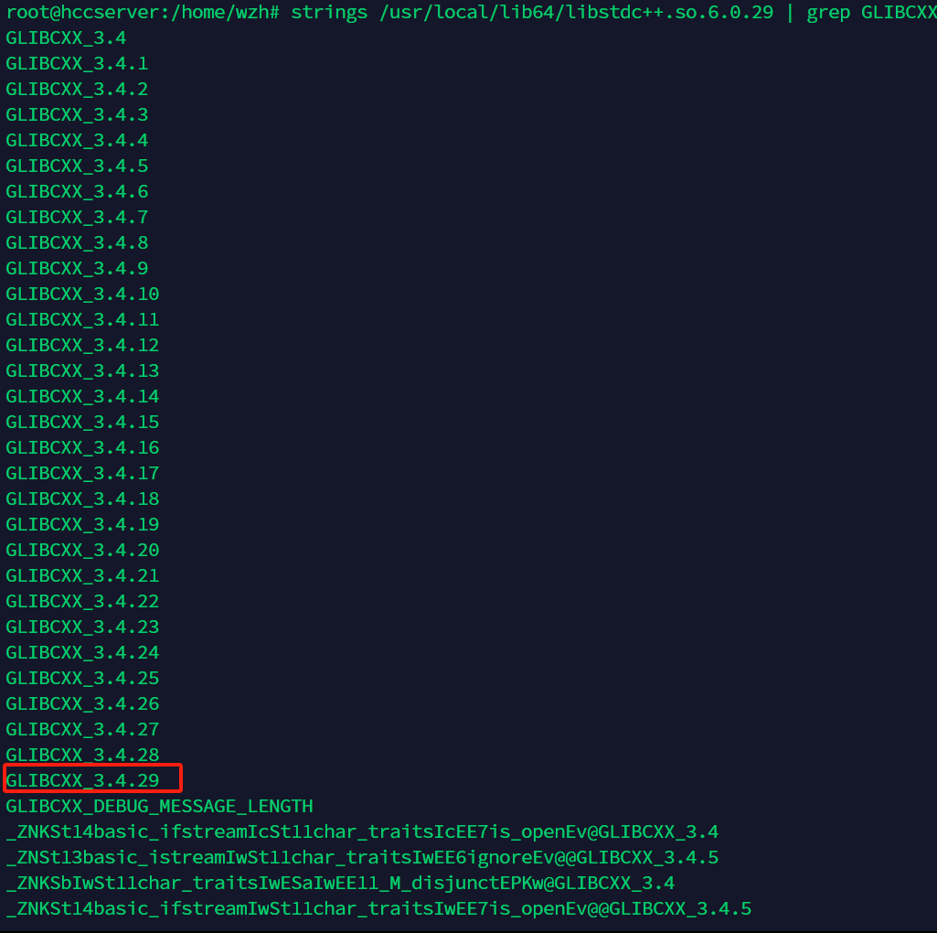 strings /usr/lib/x86_64-linux-gnu/libstdc++.so.6 | grep GLIBCXX我这里只到3.28,所以确定是缺少GLIBCXX_3.4.29。