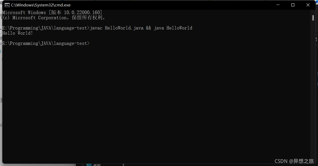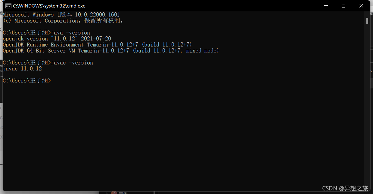 打开一个新的cmd窗口(必须是新的!),输入 java -version 和 javac -version 两个命令。如果有类似如下的输出,则代表安装成功了!!