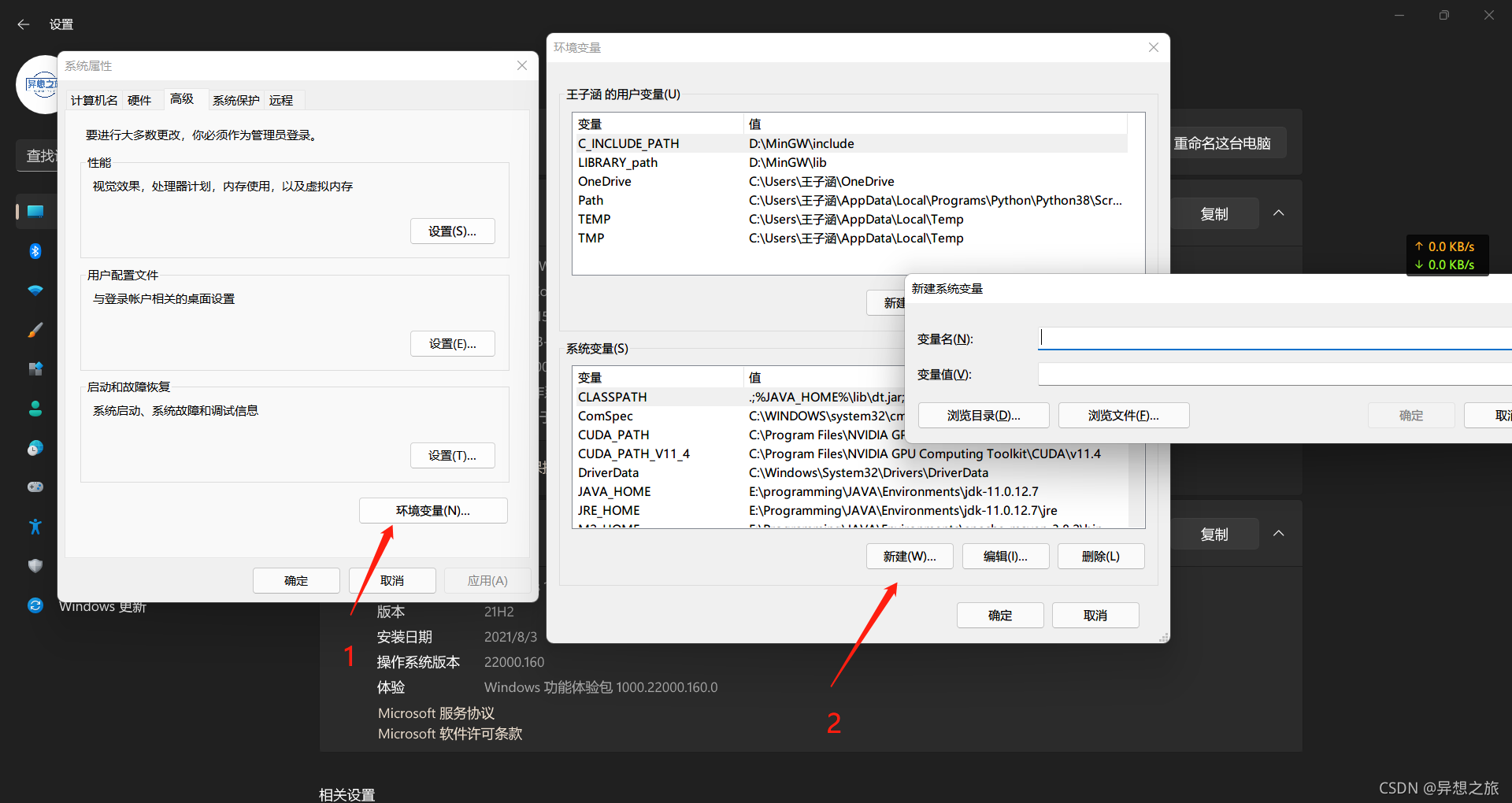 E:\programming\JAVA\Environments\jdk-11.0.12.7\jre) - 名称为CLASSPATH,内容为