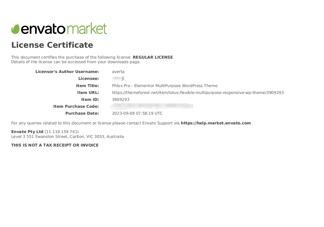 特别说明的是,本文中所介绍的是 Phlox 主题的破解版。这是一个优秀的主题,但是售价较贵,本文介绍是为了让大家在购买正版前有机会充分尝试;本人已购买正版,下面为截图: