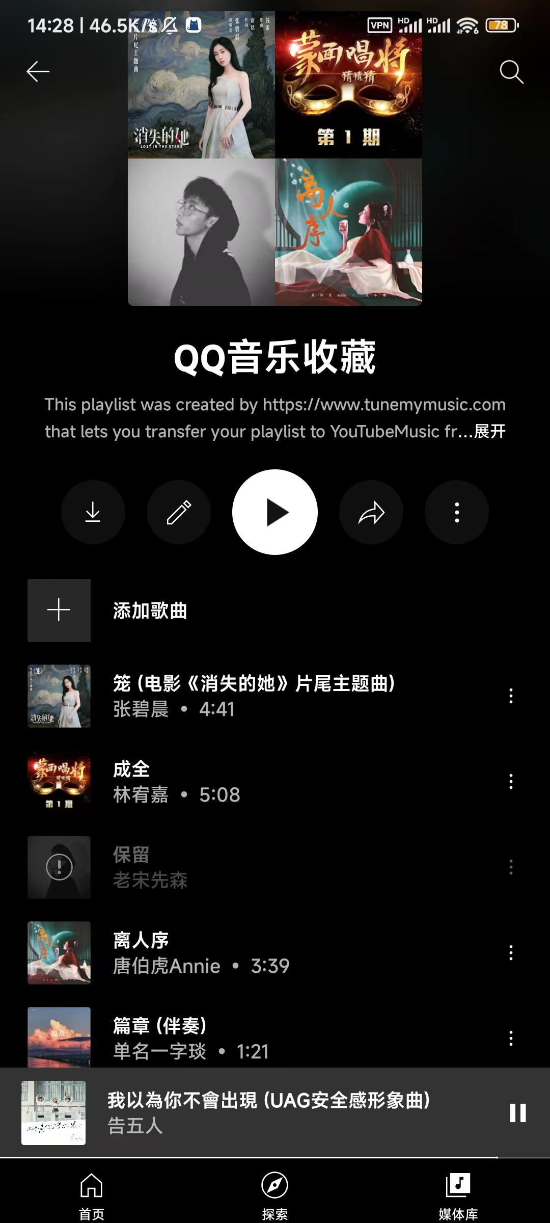 有一些歌曲可能无法转移成功,一方面 YouTube Music 的曲库肯定不会与 QQ 或网易云完全匹配,另一方面有些歌曲在 YouTube Music 上可能是繁体中文命名的,再手动处理一下就 OK 啦
