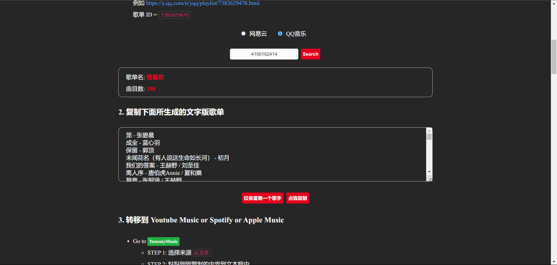 取出列表 ID,输入到下面的工具中获取文字版歌单:https://yyrcd.com/n2s/