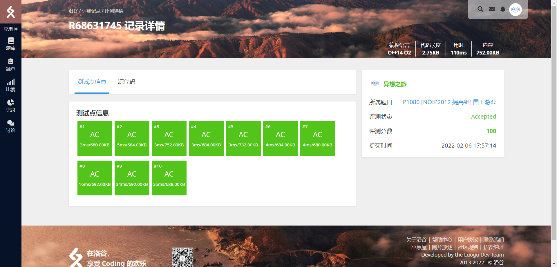 }不得不说高精度速度还是挺快的,前几个点按毫秒算时间才个位数,和普通加法乘法几乎无差别。