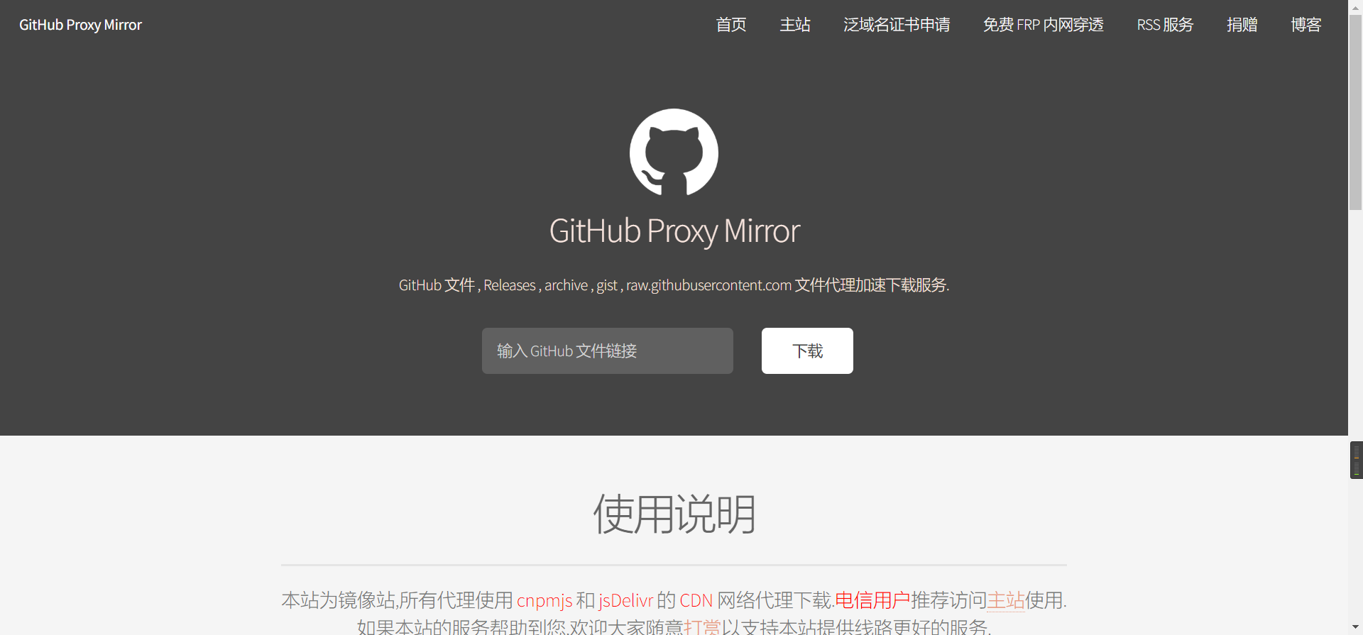 https://github.com/用户名/项目名/archive/refs/heads/分支名称.zip在clone和wget等操作中也可使用该镜像: