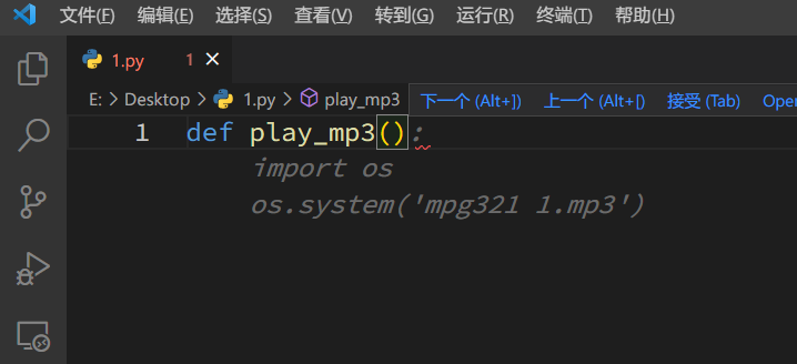 按一下 Alt + ] 可以切换下一个,此处我切换后得到了使用pygame的用例: