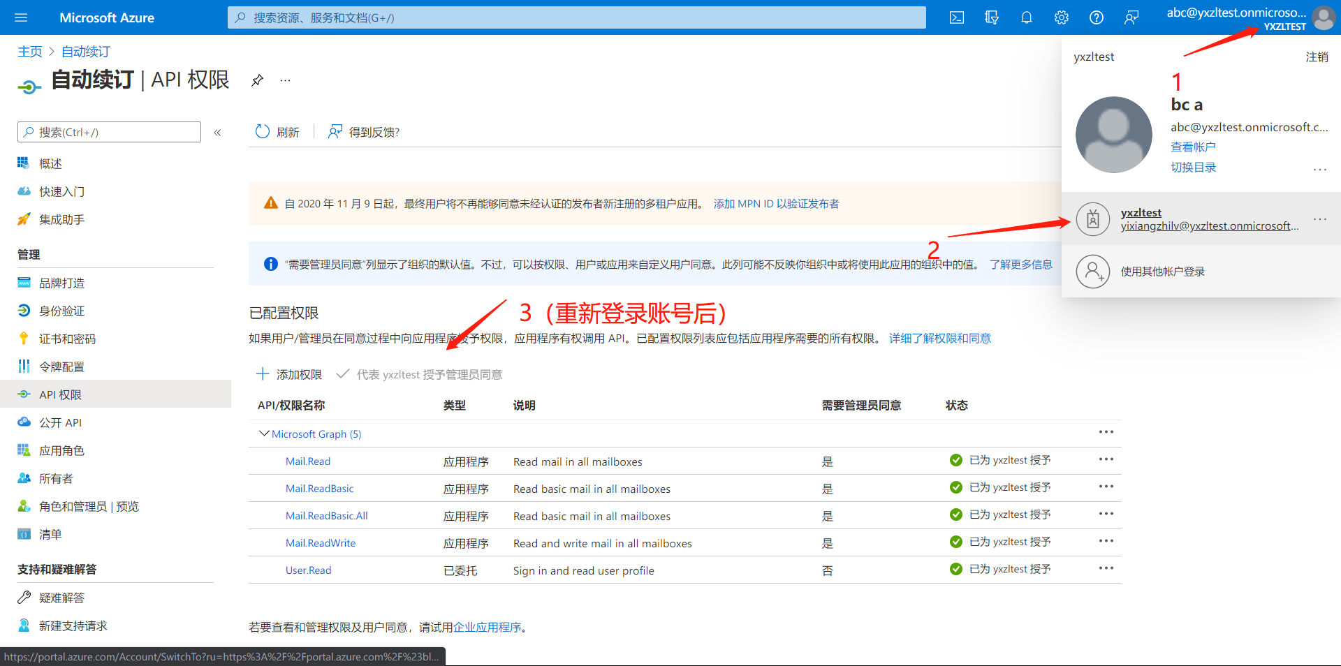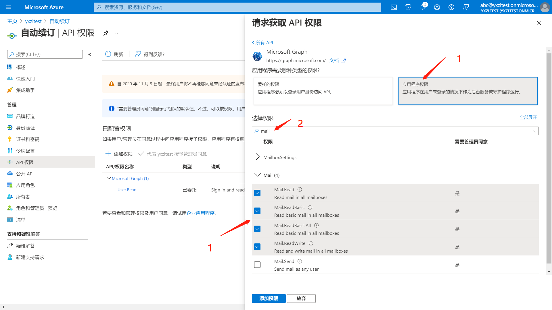 api权限仅拥有 openid offline_access Mail.Read Mail.ReadWrite Mail.ReadBasic Mail.ReadBasic.ALL 这6个权限