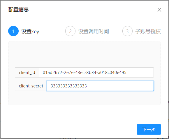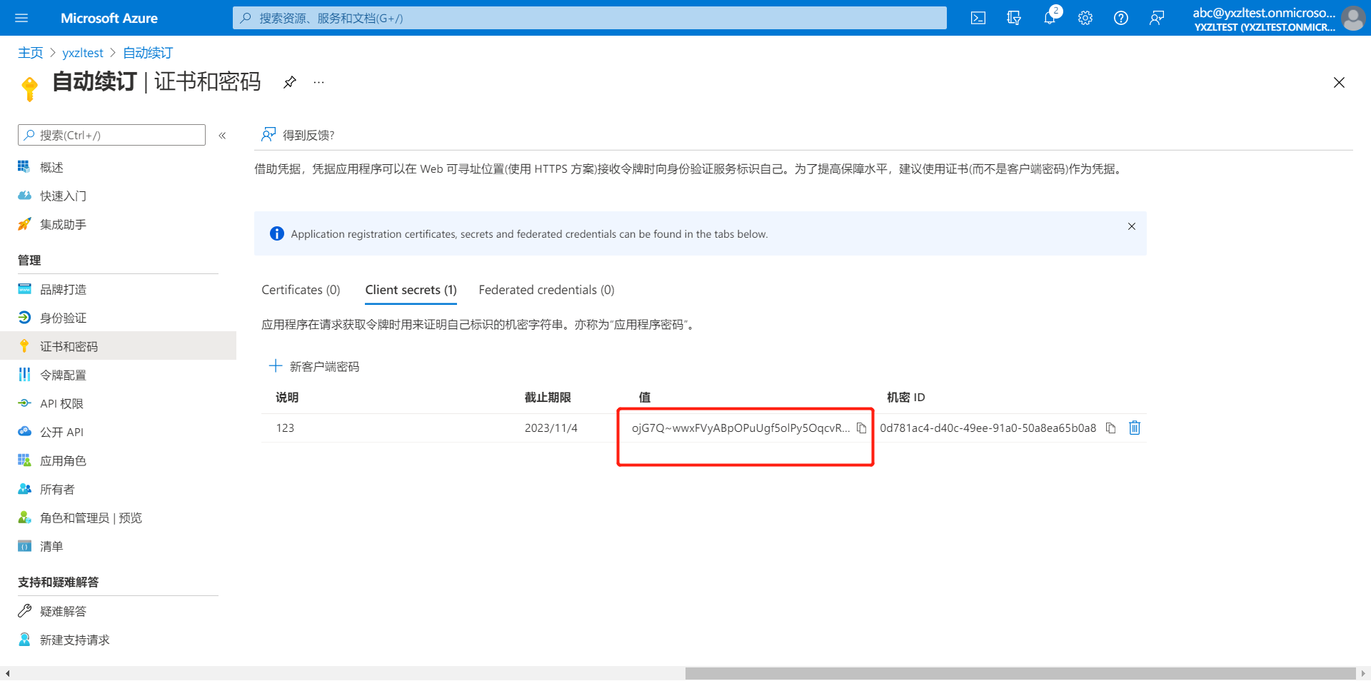 填入上一步记录的 应用程序(客户端)ID、客户端密码